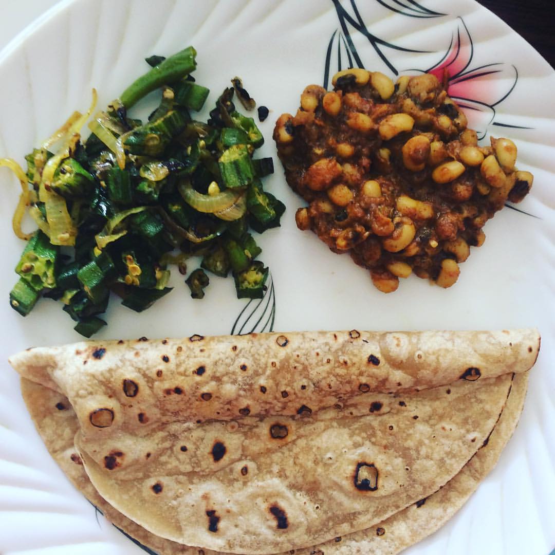 Fried okra and black eyed peas masala