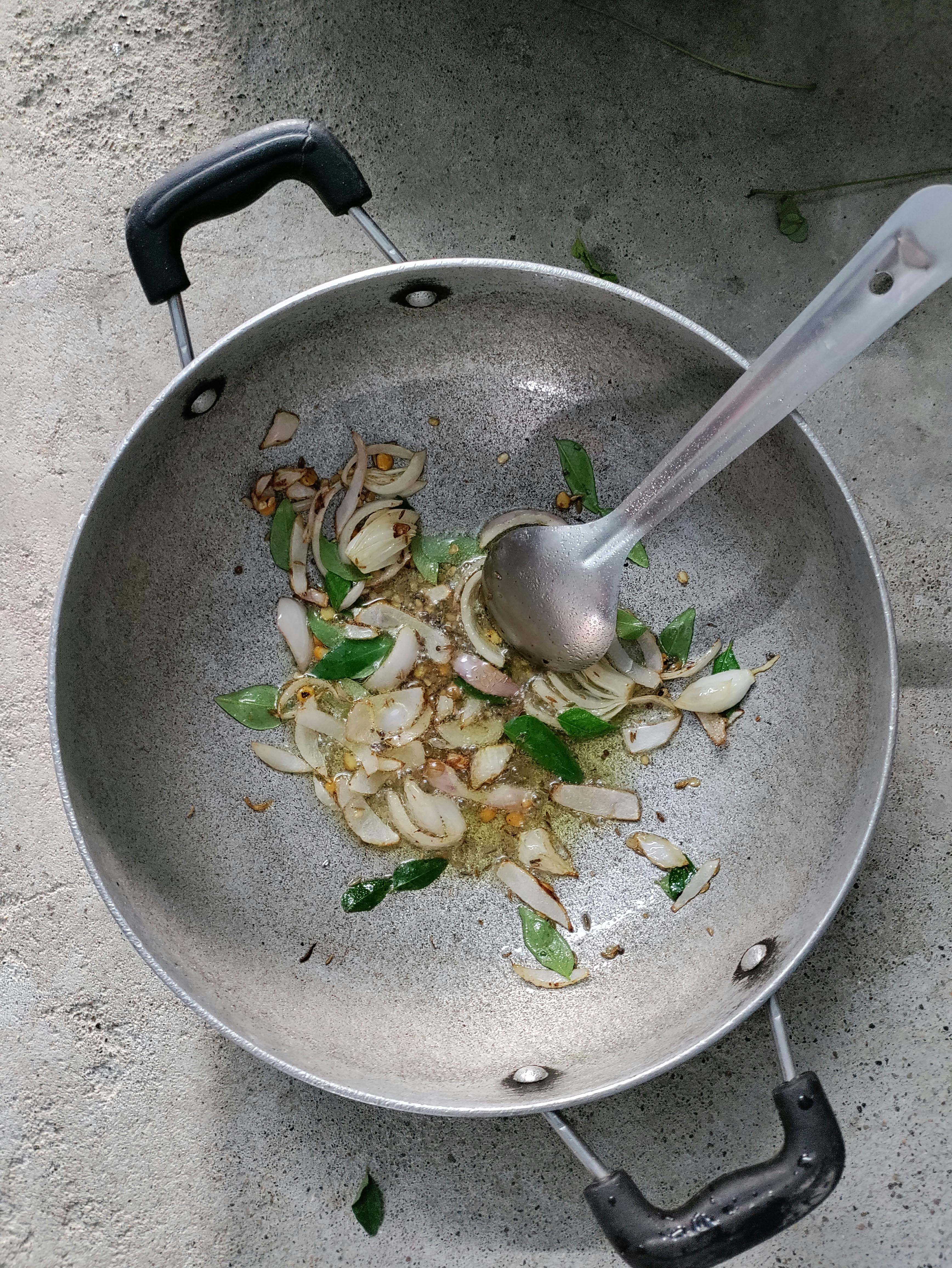 When the mustard seeds splutter, that’s when you add the curry leaves, shallots, and chillies. Call them by their names: kaduk, kariveppila, ulli, mulak. Repeat them, ketto? They will be your anchors later.
