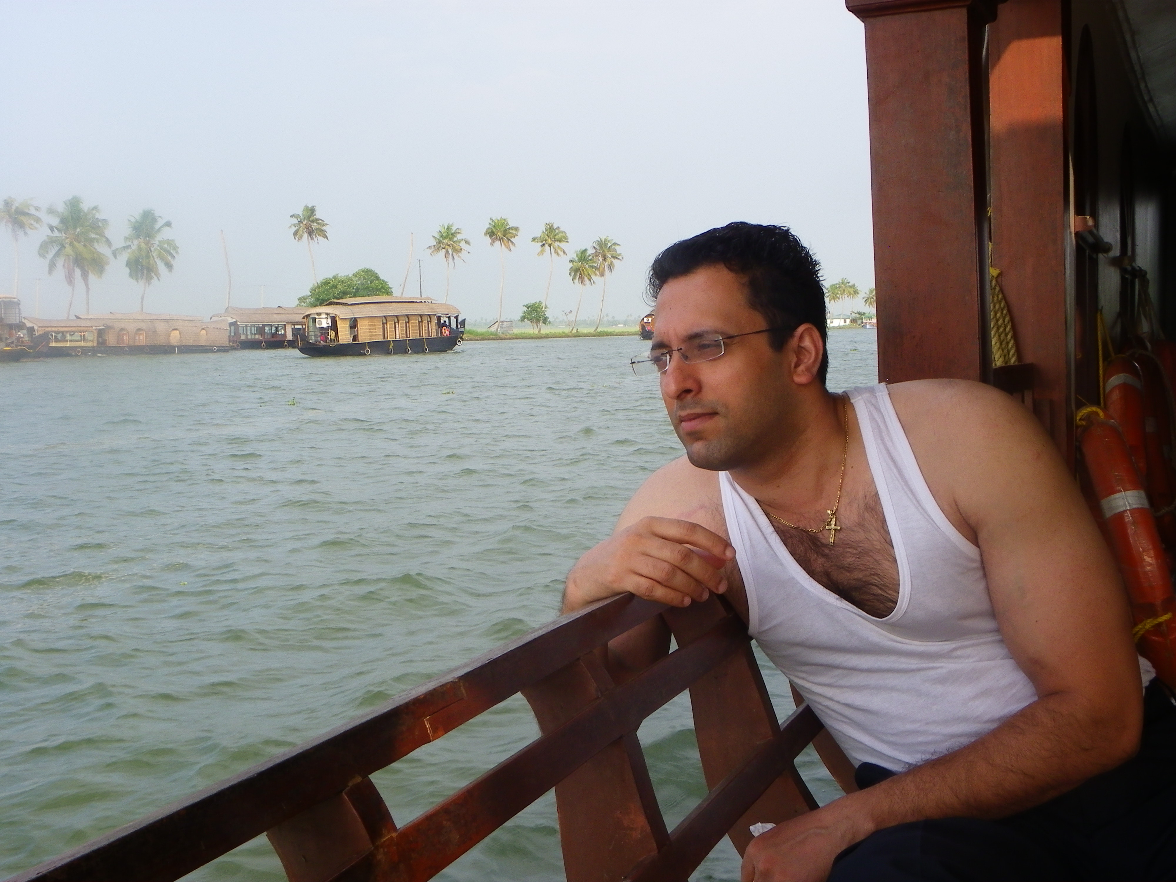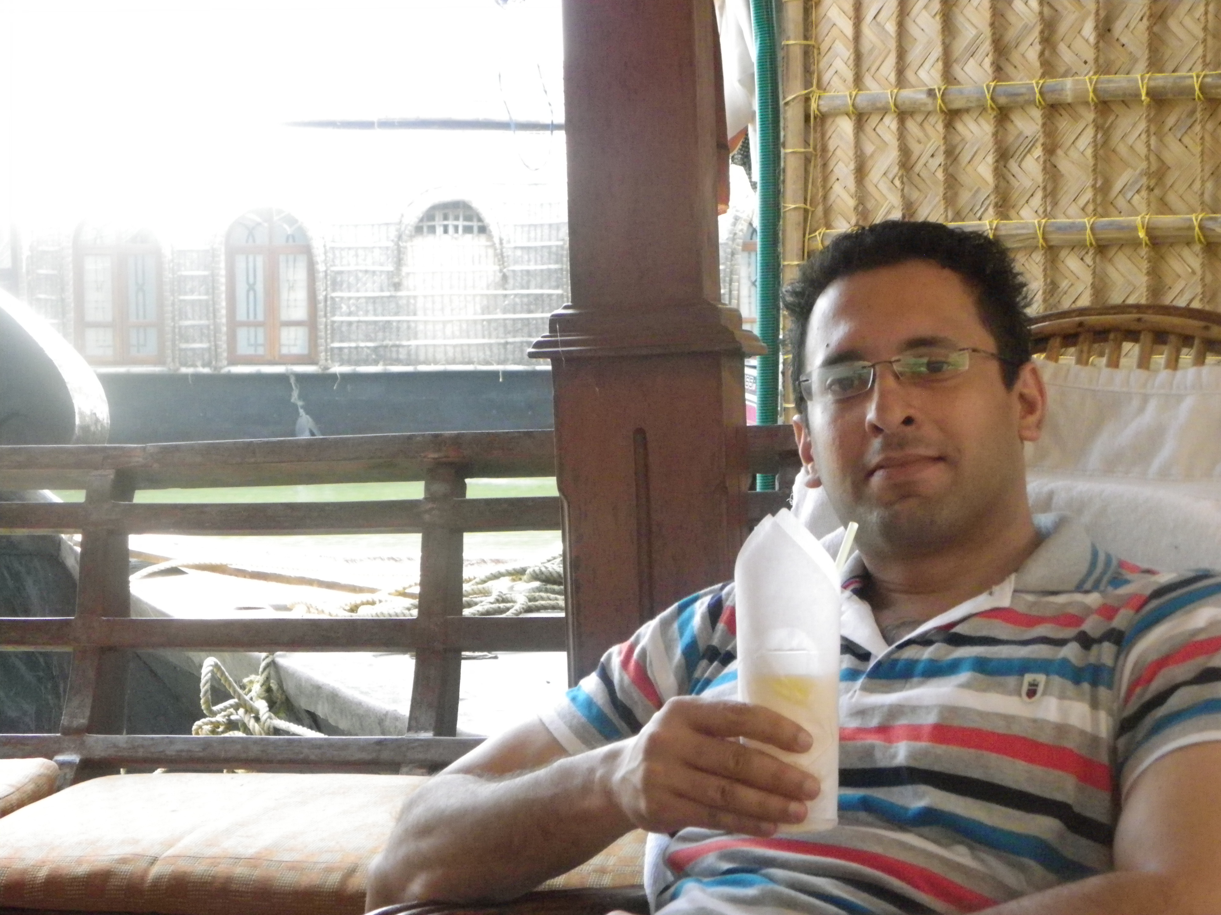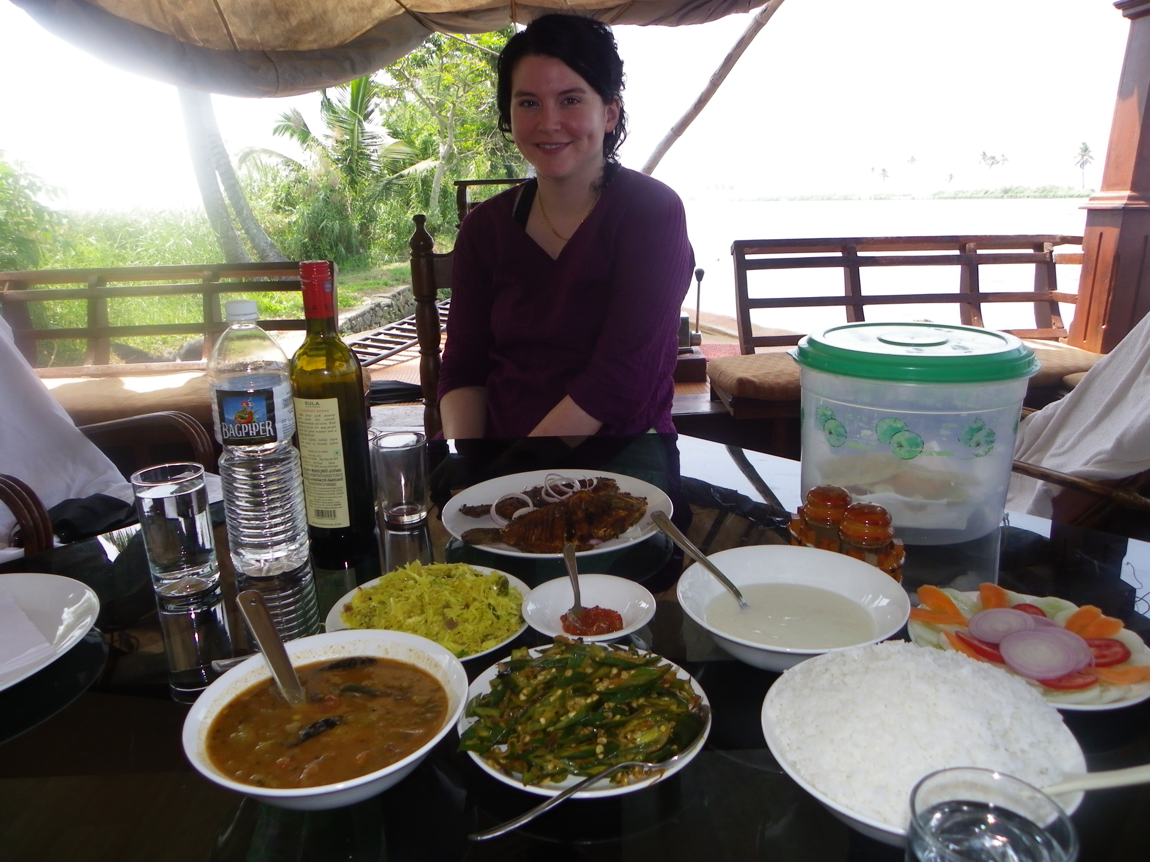 The large windows overlook the lake. I’ve been watching the houseboats float by, rippling the lake water, with coconut trees looming in the background.